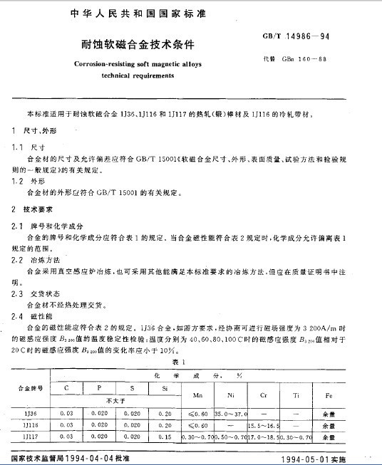 衡陽市金則利特種合金股份有限公司成立于1999年,公司主營(yíng)耐蝕軟磁合金,為湖南省高新技術(shù)企業(yè)。公司自成立以來,即致力于耐蝕軟磁合金的研發(fā)。公司已具備年產(chǎn)耐蝕軟磁合金8000噸的生產(chǎn)能力。